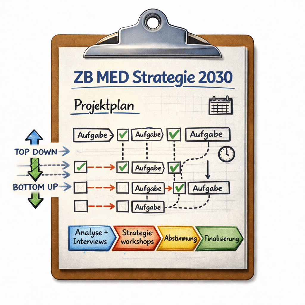 Die Strategie liegt vor und ist so kurz und prägnant wie nie: Auf nur vier Seiten werden die strategischen Stützpfeiler klar und verständlich formuliert. Das Ergebnis zeigt, dass ein strukturierter, effizienter und zugleich fundierter Strategieprozess möglich ist. Hand aufs Herz: Ohne die Außenperspektive und die lösungsorientierte und dennoch humorvolle Moderation durch Anne Christensen und Matthias Fink hätten wir das nie erreicht. Mit der Strategie ist die Grundlage gelegt. Nun beginnt die Umsetzung. Herausfordernd bleibt dies allemal – doch genau darin liegt die Stärke von ZB MED. Angetrieben wird unser Handeln von einer klaren Vision: